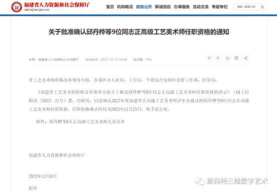 Recently, according to the content announced in "Notice on Approving and Confirming the Senior Artisan Title Qualification of Qi Danhua and Others" (Min Ren Social Security Approval [2023] No. 764), the founder of Smart Enterprise, Yang De An, was appraised and awarded the Senior Artisan Title Qualification.
